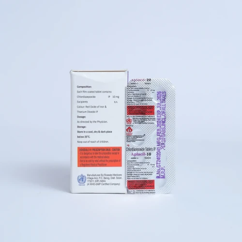 | Description: | APLACIL 10 Tablet contains Chlordiazepoxide 10 mg, a benzodiazepine used for the management of anxiety disorders and related conditions. It works by enhancing the effect of a natural calming chemical (GABA) in the brain, which helps reduce excessive nervous activity. APLACIL 10 Tablet is commonly prescribed for anxiety, agitation, alcohol withdrawal symptoms, and short-term relief of severe stress. |