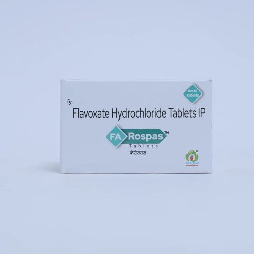 | Description: | FA-ROSPAS Tablet contains Flavoxate 200mg, a urinary antispasmodic agent used to relieve bladder muscle spasms and associated symptoms. Flavoxate works by relaxing the smooth muscles of the urinary tract, helping to reduce urinary urgency, frequency, painful urination (dysuria), and bladder discomfort. It is commonly used in conditions such as urinary tract infections (UTIs), cystitis, prostatitis, and other urological disorders. |