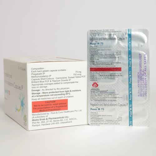 | Description: | POXER M 75 Capsule is a combination medicine formulated for the management of neuropathic pain and nerve health support. It contains Pregabalin 75 mg, which helps reduce abnormal nerve signals causing pain, and Methylcobalamin (Vitamin B12, 750 mcg), which supports nerve regeneration and repair. This formulation is ideal for patients with mild to moderate neuropathic pain, including diabetic neuropathy, peripheral neuropathy, and nerve-related pain disorders, offering both symptomatic relief and long-term nerve nourishment. |