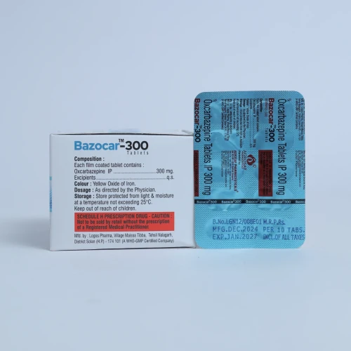 | Description: | BAZOCAR 300 Tablet contains Oxcarbazepine 300 mg. It is used for the management of epilepsy and partial seizures in adults and children. Oxcarbazepine stabilizes hyper-excited nerve membranes, inhibits repetitive neuronal firing, and reduces seizure activity, helping to control epileptic episodes effectively. |
