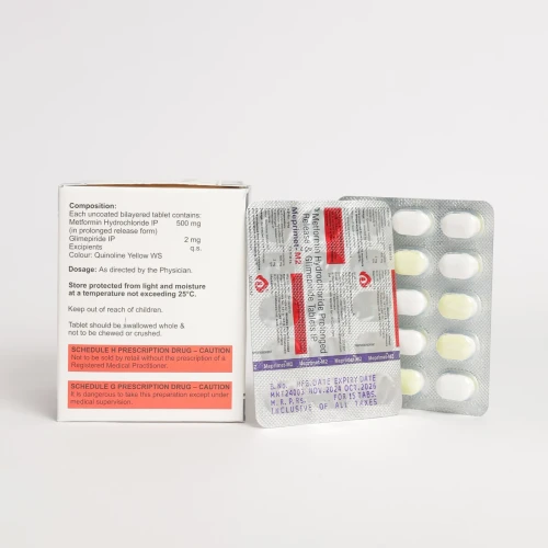 | How to Use: | Take MEPRIMET M2 Tablet orally, usually once or twice daily with meals or as prescribed. Swallow the tablet whole with water. Do not skip meals to prevent hypoglycemia. Maintain a healthy diet and regular exercise routine. Monitor blood glucose levels regularly. |
