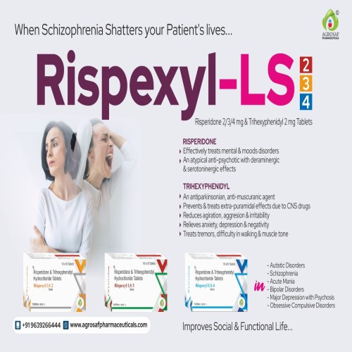 | Description: | Rispexyl LS4 Tablet is a combination of Risperidone 4 mg and Trihexyphenidyl 2 mg. It is used for the treatment of schizophrenia and other severe psychotic disorders. Risperidone helps regulate dopamine and serotonin levels to control psychiatric symptoms, while Trihexyphenidyl reduces the risk of extrapyramidal symptoms (EPS) such as tremors, rigidity, and muscle stiffness associated with antipsychotic therapy. |