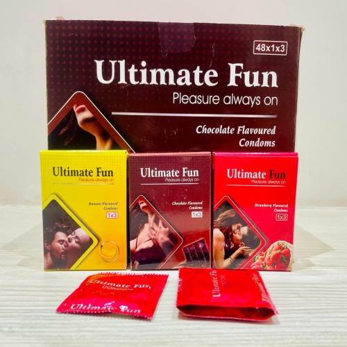 | COMPOSITION: | Ultimate Fun (576 Dotted) Condom(three Flavour:-chocolate,banana & Strawberry) |