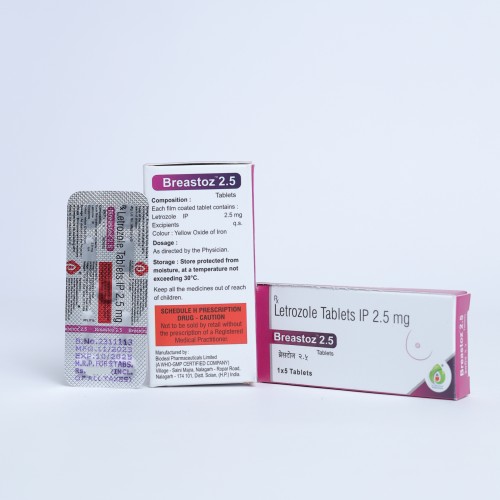 | Description: | BREASTOZ 2.5 Tablet contains Letrozole 2.5mg, a non-steroidal aromatase inhibitor used in the treatment of hormone receptor-positive breast cancer in postmenopausal women. Letrozole works by inhibiting the aromatase enzyme, which reduces the production of estrogen in the body. Since certain breast cancers grow in response to estrogen, lowering estrogen levels helps slow or stop the growth of cancer cells. It is also used in ovulation induction in infertility treatment under medical supervision. |