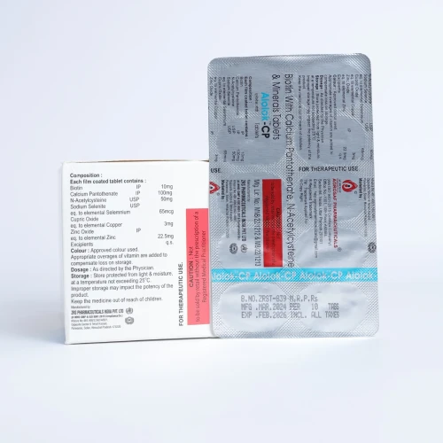| COMPOSITION: | Biotin 10 Mg Acetylcysteine 50 Mg Calcium Panthoenate 100 Mg Sodium Selenite 65mcg Cupric Oxide 3 Mg Zinc Oxide 22.5 Mg |