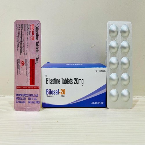 | Description: | BILOSAF 20MG Tablet contains Bilastine 20 mg, a second-generation antihistamine used to treat allergic conditions such as allergic rhinitis and urticaria (hives). It works by blocking histamine receptors in the body, thereby reducing symptoms like sneezing, runny nose, itching, watery eyes, and skin rashes. BILOSAF 20MG Tablet provides long-lasting relief from allergy symptoms without causing significant drowsiness and is widely used in allergy management. |