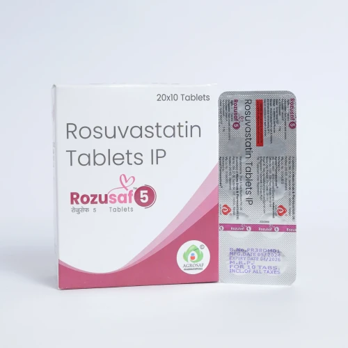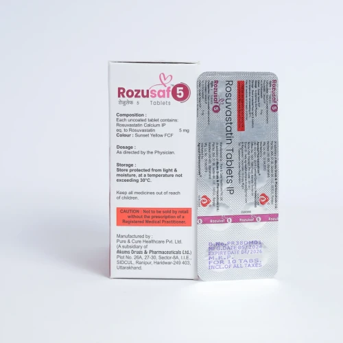 | Description: | ROZUSAF 5 Tablet contains Rosuvastatin calcium equivalent to Rosuvastatin 5 mg. It is used for the management of dyslipidemia (high cholesterol levels) and prevention of cardiovascular diseases. Rosuvastatin works by inhibiting HMG-CoA reductase, helping reduce LDL (bad cholesterol) and triglycerides while increasing HDL (good cholesterol). This lower strength is ideal for initiation and maintenance therapy. |