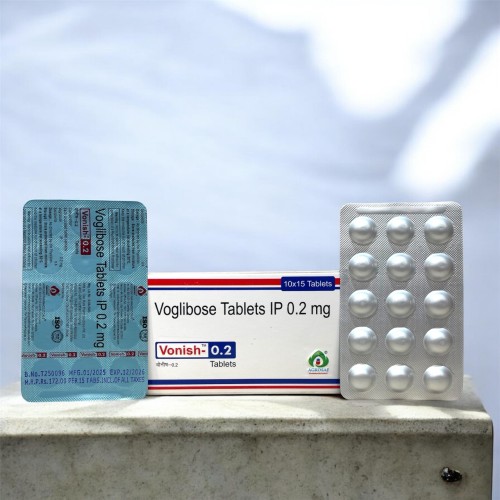 | Description: | VONISH-0.2 Tablet contains Voglibose 0.2mg, an oral antidiabetic medication used for the management of type 2 diabetes mellitus. Voglibose belongs to the alpha-glucosidase inhibitor class, which works by slowing down the absorption of carbohydrates in the intestines. This helps in controlling postprandial (after-meal) blood sugar spikes, improving overall glycemic control. |