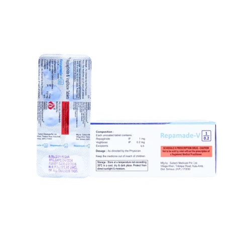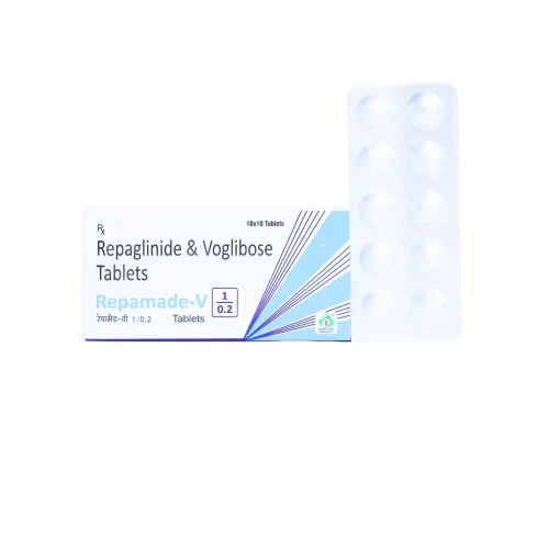 | Description: | REPAMADE V1/0.2 Tablet is a combination of Repaglinide 1 mg and Voglibose 0.2 mg. It is used for the management of type 2 diabetes mellitus, particularly in patients who require better control of postprandial (after-meal) blood glucose levels. Repaglinide stimulates insulin release from the pancreas, while Voglibose delays carbohydrate absorption in the intestine, providing dual-action glycemic control. |