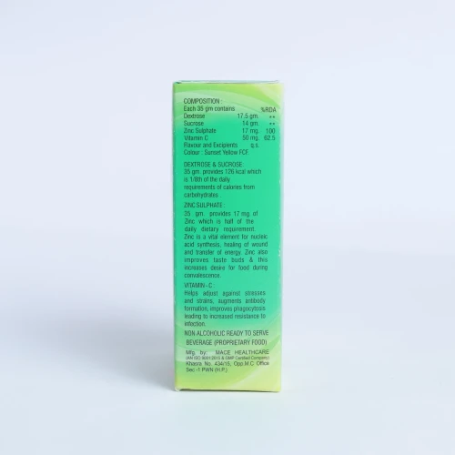 | COMPOSITION: | Composition: Each 35 Gm Contains Dextrose 17.5 Gm, Sucrose 14 Gm, Zinc Sulphate 17 Mg. Vitamin C 50 Mg, Flavour And Excipients Q.s. Colour: Sunset yellow fcf. |