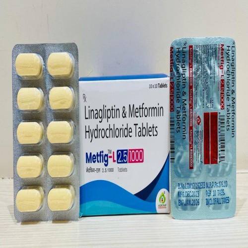 | Description: | METFIG-L 2.5/1000 Tablet is a combination antidiabetic medication containing Linagliptin 2.5mg and Metformin 1000mg. This dual-action formula is widely prescribed for the effective management of type 2 diabetes mellitus. Linagliptin, a DPP-4 inhibitor, enhances incretin hormones to regulate insulin secretion, while Metformin, a biguanide, reduces hepatic glucose production and improves insulin sensitivity. Together, they provide superior glycemic control, particularly in patients inadequately controlled on monotherapy. This combination is ideal for long-term diabetes management and helps reduce both fasting and postprandial blood sugar levels. |