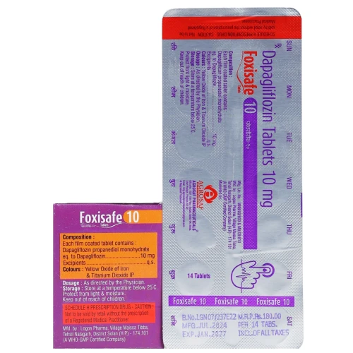 | Description: | FOXISAFE 10MG Tablet contains Dapagliflozin 10 mg, an SGLT2 (sodium-glucose co-transporter 2) inhibitor used in the management of type 2 diabetes mellitus. It works by preventing glucose reabsorption in the kidneys, leading to increased glucose excretion through urine and improved blood sugar control. FOXISAFE 10MG Tablet is also associated with cardiovascular and renal benefits in diabetic patients. |