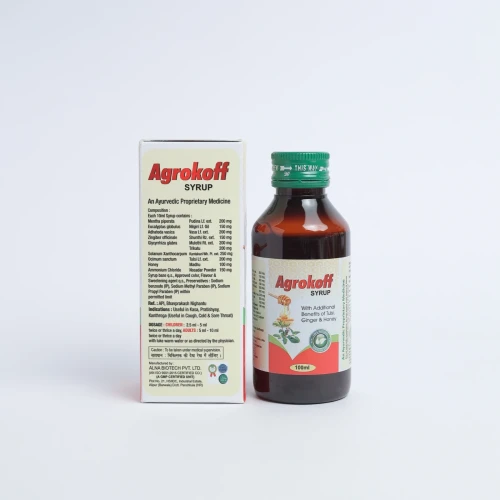 | Description: | AGROKOFF SYRUP is a natural, Ayurvedic-based herbal cough syrup enriched with the soothing properties of Honey, Ginger, and Tulsi. This powerful combination is known for its effectiveness in providing relief from dry and productive cough, throat irritation, allergic bronchitis, and cold-related respiratory discomfort. |