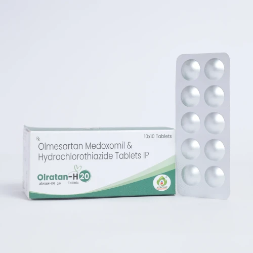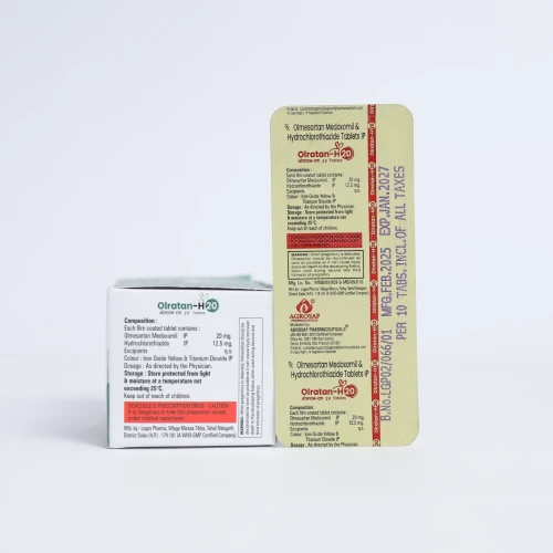 | Description: | OLRATAN H 20 Tablet contains a combination of Olmesartan Medoxomil 20 mg and Hydrochlorothiazide 12.5 mg. This dual-action antihypertensive is used to control high blood pressure (hypertension). Olmesartan relaxes blood vessels by blocking angiotensin II, while Hydrochlorothiazide helps reduce fluid retention by promoting the excretion of sodium and water. Together, they provide more effective blood pressure management and cardiovascular protection. |