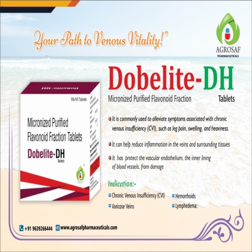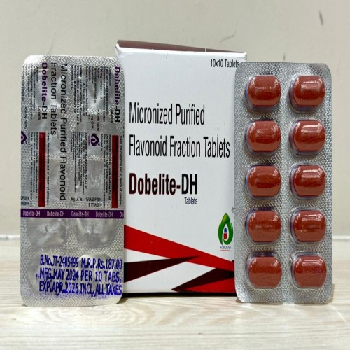 | Description: | DOBELITE-DH Tablet is a combination of Diosmin 450mg and Hesperidin 50mg, two flavonoids widely used for the management of vascular disorders. This formulation helps improve venous tone, reduce capillary permeability, and enhance lymphatic drainage. It is commonly prescribed for conditions such as chronic venous insufficiency, varicose veins, hemorrhoids (piles), and leg swelling. The combination works synergistically to improve blood circulation and reduce inflammation in veins. |