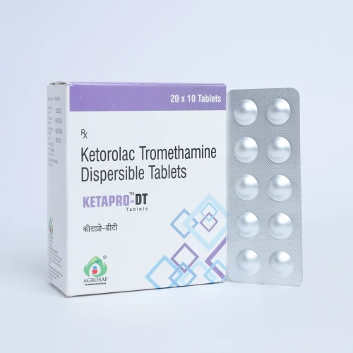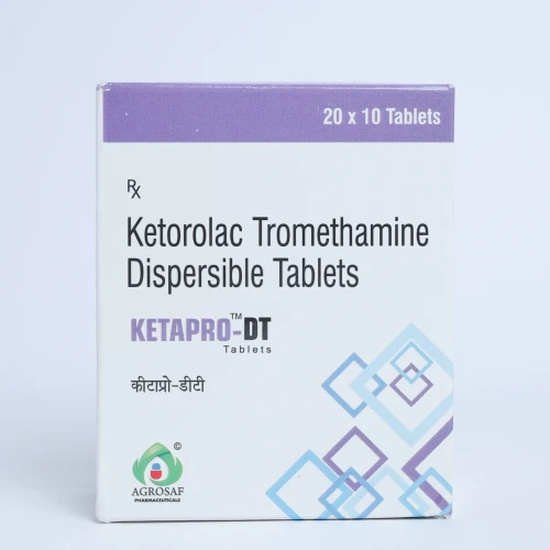 | Description: | KETAPRO DT Tablet contains Ketorolac 10mg (Dispersible Tablet), a non-steroidal anti-inflammatory drug (NSAID) used for the short-term management of moderate to severe pain. Ketorolac works by inhibiting prostaglandin synthesis, thereby reducing pain, inflammation, and swelling. The dispersible formulation allows the tablet to dissolve quickly in water, ensuring faster absorption and quicker pain relief. It is commonly used for post-operative pain, dental pain, musculoskeletal pain, and acute injury-related pain. |