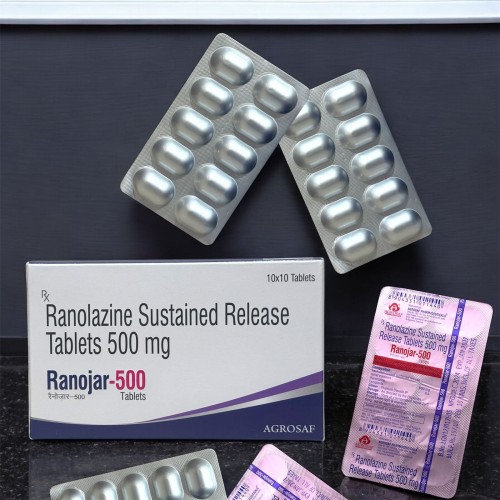 | Description: | RANOJAR-500 Tablet contains Ranolazine 500 mg. It is used for the treatment of chronic stable angina (chest pain). Ranolazine works by improving blood flow to the heart and optimizing myocardial energy utilization without significantly affecting heart rate or blood pressure, thereby reducing the frequency of angina attacks and improving exercise tolerance. |