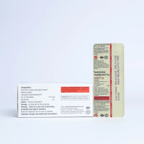 | Description: | AROPAX CR 12.5 Tablet contains Paroxetine 12.5 mg in a controlled-release formulation. It is primarily used for the management of depression, anxiety disorders, obsessive-compulsive disorder (OCD), panic disorder, and other related psychiatric conditions. The controlled-release formulation allows for steady release of the drug, improving efficacy and reducing side effects. |