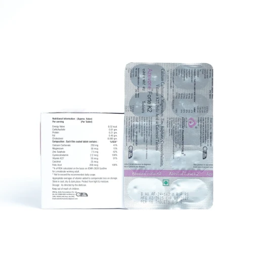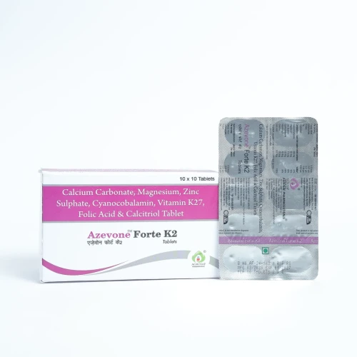| Description: | Azevone Forte K2 Tablet is a high-potency vitamin and mineral supplement specifically formulated to support bone health and overall vitality. Enriched with Vitamin K2, it helps in proper calcium utilization and maintaining strong bones. This tablet is ideal for adults who want to prevent bone-related issues, support cardiovascular health, and improve overall wellness. |