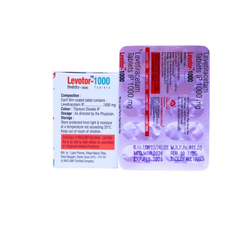 | Description: | LEVOTOR 1000 Tablet contains Levetiracetam 1000mg, an antiepileptic (anticonvulsant) medication used for the treatment of partial-onset seizures, myoclonic seizures, and generalized tonic-clonic seizures. Levetiracetam works by modulating synaptic neurotransmitter release through binding to the SV2A protein, thereby stabilizing abnormal electrical activity in the brain. It helps in reducing seizure frequency and improving neurological control. |
