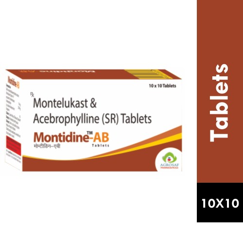 | Description: | MONTIDINE AB Tablet is a combination of Montelukast 10mg and Acebrophylline 200mg, formulated for the management of asthma, chronic obstructive pulmonary disease (COPD), and other respiratory conditions associated with bronchospasm and inflammation. Montelukast 10mg is a leukotriene receptor antagonist that reduces airway inflammation and prevents allergic reactions. Acebrophylline 200mg is a bronchodilator and mucolytic agent that relaxes airway muscles and helps clear mucus from the respiratory tract. This dual-action combination improves airway function, reduces inflammation, and enhances breathing capacity, making it effective in chronic respiratory disorders. |