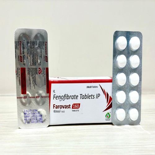 | Description: | FAROVAST-160 Tablet contains Fenofibrate 160mg, a lipid-lowering agent used in the treatment of hyperlipidemia and hypertriglyceridemia. Fenofibrate works by activating PPAR-α (Peroxisome Proliferator-Activated Receptor Alpha), which enhances the breakdown of lipids, leading to reduced triglyceride levels, increased HDL (good cholesterol), and improved overall lipid profile. FAROVAST-160 is commonly prescribed to reduce cardiovascular risk and is used alongside dietary and lifestyle modifications. |