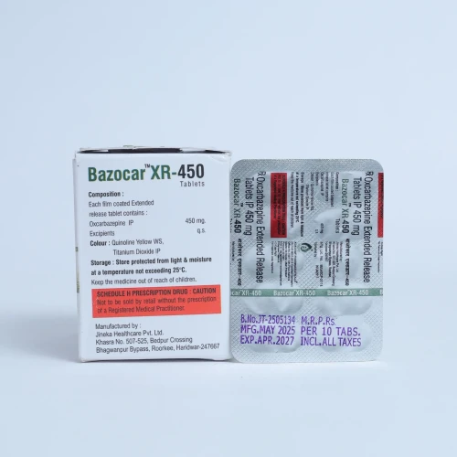 | Description: | BAZOCAR XR 450 Tablet contains Oxcarbazepine 450 mg in an extended-release formulation. It is used for the management of epilepsy and partial seizures in adults and children. The extended-release mechanism provides steady therapeutic levels of oxcarbazepine throughout the day, helping to prevent seizure activity effectively while reducing the frequency of dosing. |