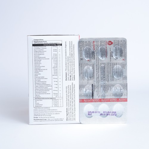 Evening Primrose Oil 250mg+ L-carnitine-l-tartrate Eq. To L-carnitine 10mg + Ginkgo Biloba Extract 40mg + Green Tea Extract Eq. To Polyphenols 20mg + Lycopene 2.5mg + Citrus Bioflavonoids 12.5mg+ Natural Mixed Carotenoids 11.33mg + Niacinamide 45mg + Vitamin B5 1.5mg + Vitamin B12 2mcg+ Folic Acid 1mg + Calcium Ascorbate 45mg+ Vitamin D3 1000 Iu+ Virgin Wheat-germ Oil 25mg+ Choline Bitrate 10mg+ Inositol 10mg + Lysine Hcl 10mg+ Biotin 300mcg+ Potassium Iodide Eq. To Elemental Iodine 50mcg + Zinc Oxide Eq. To Elemental Zinc 10mg+ Manganese Sulphate Eq. To Elemental Manganese 4mg+ Copper Sulphate Pentahydrate Eq. To Elemental Copper 1mg + Sodium Selenite Pentahydrate Eq. To Elemental Selenium 40mcg + Chromium Picolinate Eq. To Elemental Chromium 50mcg + Piperine 2.5mg + Excipients Q.s. |