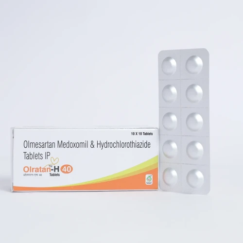 | Description: | OLRATAN H 40 Tablet contains a combination of Olmesartan Medoxomil 40 mg and Hydrochlorothiazide 12.5 mg. This dual-action antihypertensive is designed for patients who need stronger blood pressure control. Olmesartan relaxes blood vessels by blocking angiotensin II, while Hydrochlorothiazide promotes the excretion of sodium and water to reduce fluid retention. Together, they provide effective management of hypertension and protect cardiovascular health. |