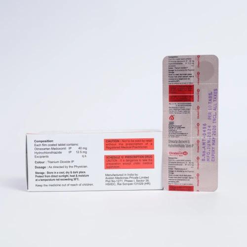 | COMPOSITION: | Olmesartan Medoxomil (40mg) + Hydrochlorothiazide (12.5mg) |