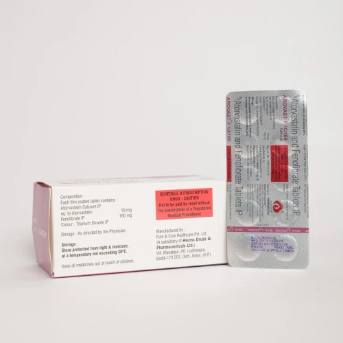 | Description: | AROVAST-F 10/160 Tablet is a combination medication containing Atorvastatin 10 mg and Fenofibrate 160 mg, used for the management of high cholesterol and mixed dyslipidemia. Atorvastatin is a statin that reduces cholesterol production in the liver, lowering levels of LDL (bad cholesterol) and triglycerides. Fenofibrate is a lipid-modifying agent that helps reduce triglyceride levels and increase HDL (good cholesterol). This combination therapy helps improve overall lipid profiles and significantly reduces the risk of cardiovascular diseases such as heart attack, stroke, and atherosclerosis. AROVAST-F 10/160 Tablet is widely prescribed for patients with elevated cholesterol and triglyceride levels who require comprehensive lipid management. |