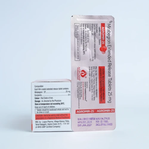 | How to Use: | Take AGROMIR-25 Tablet as prescribed by a healthcare professional Usually taken once daily Swallow whole with water; do not crush or chew Can be taken with or without food Follow regular medical check-ups and monitoring |