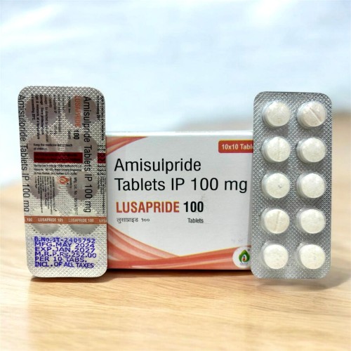 | Description: | LUSAPRIDE 100 Tablet contains Amisulpride 100 mg, an atypical antipsychotic medication used in the treatment of schizophrenia and other psychiatric disorders. It works by regulating dopamine levels in the brain, helping control abnormal thoughts, emotions, and behavior associated with psychotic conditions. Amisulpride is effective in treating both positive symptoms of schizophrenia such as hallucinations, delusions, and disturbed thinking, as well as negative symptoms including lack of motivation, emotional withdrawal, and reduced social interaction. By restoring chemical balance in the brain, it helps improve mental clarity and emotional stability. LUSAPRIDE 100 Tablet is commonly prescribed by healthcare professionals for long-term management of psychiatric conditions and improving the quality of life of patients with schizophrenia. |