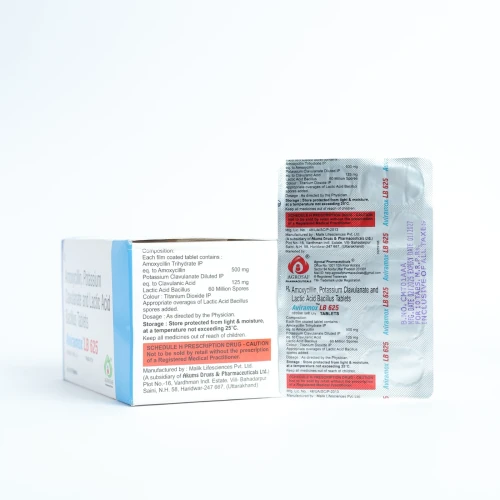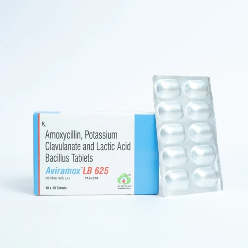 | Description: | AVIRAMOX LB 625 Tablet is a combination antibiotic containing Amoxycillin 500 mg and Clavulanic Acid 125 mg, along with Lactic Acid Bacillus 60 million spores to maintain gut health. Amoxycillin is a broad-spectrum penicillin antibiotic that inhibits bacterial cell wall synthesis. Clavulanic Acid is a beta-lactamase inhibitor that enhances the effectiveness of Amoxycillin against resistant bacteria. Lactic Acid Bacillus helps restore healthy intestinal flora during antibiotic therapy, reducing gastrointestinal side effects such as diarrhea. AVIRAMOX LB 625 Tablet is used to treat a wide range of bacterial infections including respiratory tract infections, urinary tract infections, skin infections, and dental infections. The inclusion of Lactic Acid Bacillus helps maintain gut health while the antibiotic acts against harmful bacteria. |
