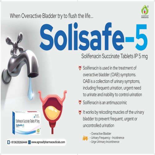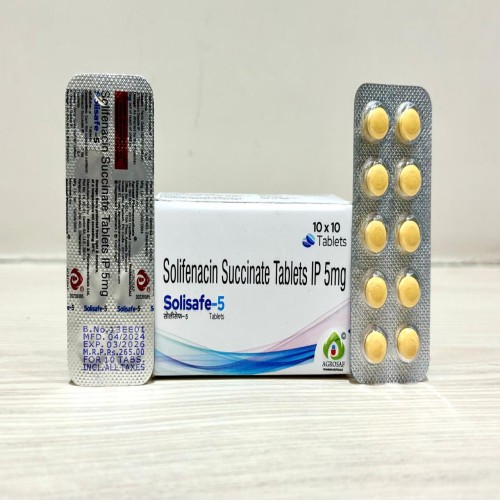 | Description: | SOLISAFE 5 Tablet contains Solifenacin Succinate 5mg, an antimuscarinic agent used for the treatment of overactive bladder (OAB). It works by relaxing the bladder muscles, thereby reducing urinary urgency, frequency, and incontinence episodes. This medication helps improve bladder control and enhances the quality of life in patients suffering from urinary disorders. |