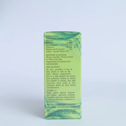 | COMPOSITION: | Composition: Each 35 Gm Contains Dextrose 17.5 Gm, Sucrose 14 Gm, Zinc Sulphate 17 Mg. Vitamin C 50 Mg, Flavour And Excipients Q.s. Colour: Sunset yellow fcf. |