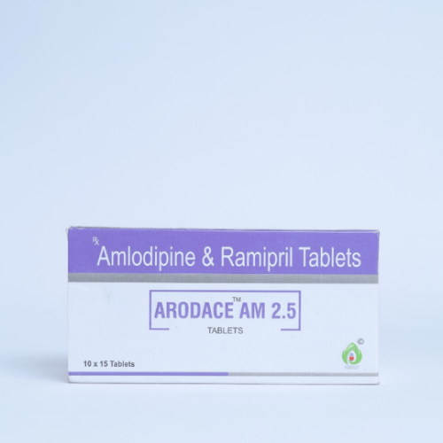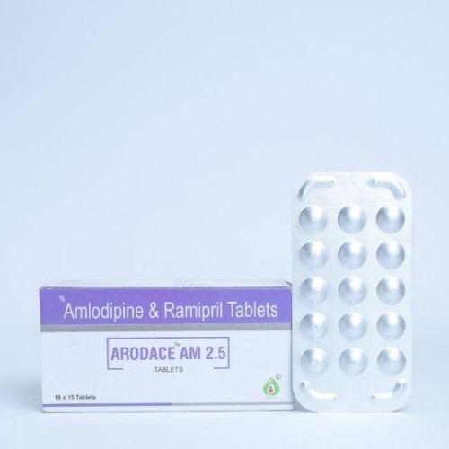 | Description: | ARODACE AM 2.5 Tablet is a combination of Ramipril 2.5 mg and Amlodipine 5 mg. It is used for the management of hypertension (high blood pressure) and prevention of cardiovascular complications. Ramipril relaxes blood vessels by inhibiting ACE, while Amlodipine dilates blood vessels by blocking calcium channels, providing effective dual-action blood pressure control. |