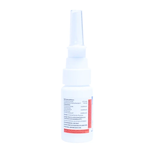 Each spray delivers: Mometasone Furoate IP 50 mcg, Azelastine Hydrochloride IP 137 mcg, Benzalkonium Chloride IP (Preservative) 0.02% w/w Excipients q.s.