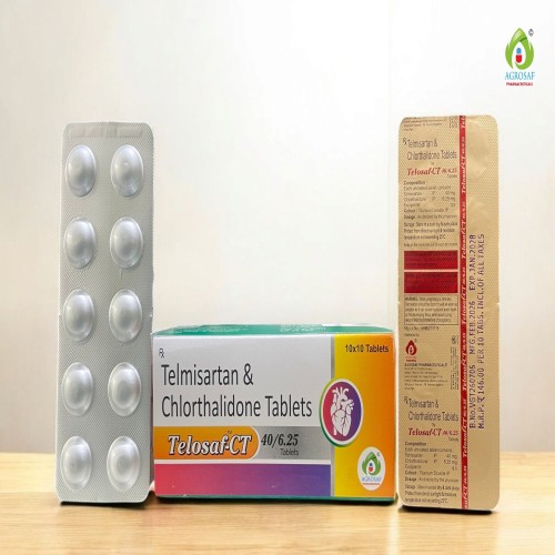 | Description: | TELOSAF-CT 40/6.25 Tablet is a combination of Telmisartan 40 mg and Chlorthalidone 6.25 mg. It is used for the management of hypertension (high blood pressure) in patients who require combination therapy. Telmisartan relaxes blood vessels by blocking angiotensin II receptors, while Chlorthalidone helps remove excess fluid and salt from the body, enhancing blood pressure control. |