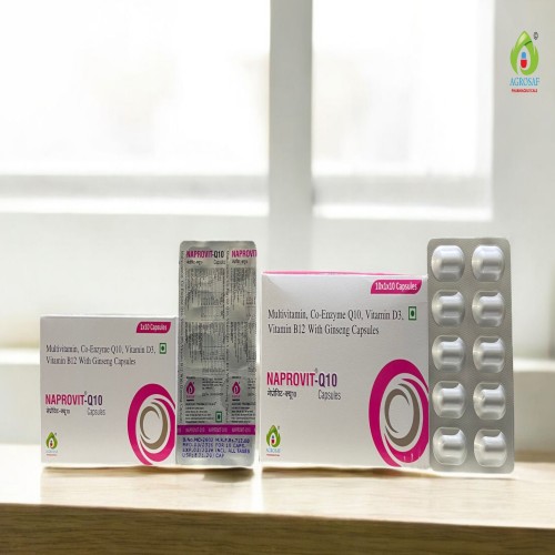 | Description: | NAPROVIT Q10 Capsules is a comprehensive nutraceutical formulation combining Multivitamins, Co-Enzyme Q10, Vitamin D3, Vitamin B12, and Ginseng. This advanced blend is designed to support energy production, heart health, immunity, and overall vitality. Co-Enzyme Q10 plays a key role in cellular energy generation, while Ginseng acts as a natural adaptogen to reduce fatigue and enhance stamina. The inclusion of essential vitamins further supports metabolic functions, nerve health, and immune strength. |