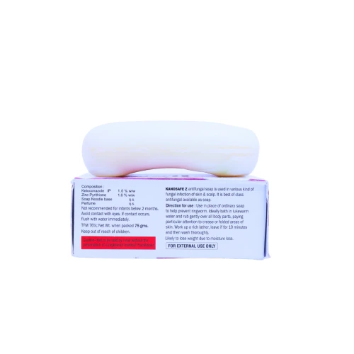 Description: KANOSAFE-Z SOAP is a powerful antiseptic soap enriched with zinc and natural skin-protective agents. It effectively cleanses the skin, removes dirt, oil, and harmful microorganisms, and helps in preventing skin infections. Regular use promotes healthy, clear, and refreshed skin, providing protection against bacteria and environmental pollutants.