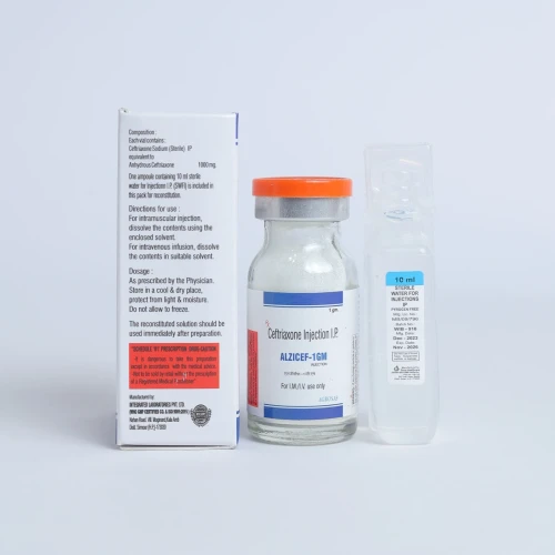 Description: ALZICEF 1GM Injection is a broad-spectrum third-generation cephalosporin antibiotic containing Ceftriaxone 1gm. It is used to treat a wide range of bacterial infections, including respiratory tract infections, urinary tract infections, skin infections, intra-abdominal infections, and meningitis. The injection is administered intramuscularly or intravenously under medical supervision. ALZICEF offers high efficacy, convenient once-daily dosing, and a strong safety profile.