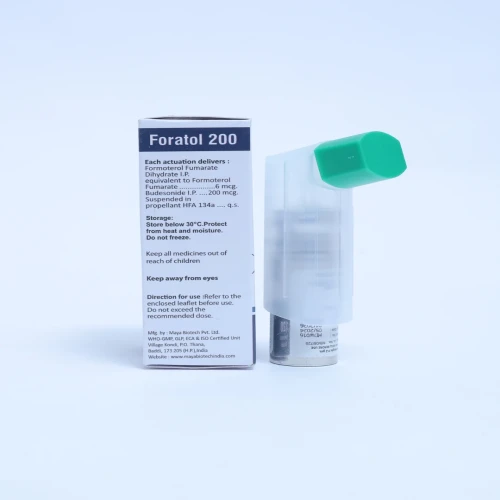 | Description: | FORATOL 200 Inhaler is a clinically formulated bronchodilator designed to provide quick and effective relief from asthma, bronchitis, and other respiratory conditions. Its metered-dose mechanism ensures precise delivery of medication directly to the lungs, helping to relax airway muscles, reduce inflammation, and improve breathing. Ideal for patients requiring fast-acting respiratory support under medical supervision. |