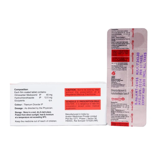 Description: OLRATAN H 40 Tablet is a powerful medication formulated to manage high blood pressure effectively and support cardiovascular health. It works by relaxing blood vessels and optimizing fluid balance in the body, helping to maintain healthy blood pressure levels and reducing strain on the heart. Regular use supports overall heart wellness and helps prevent hypertension-related complications.